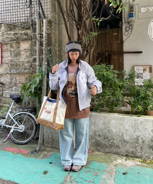 不收邊丹寧寬褲