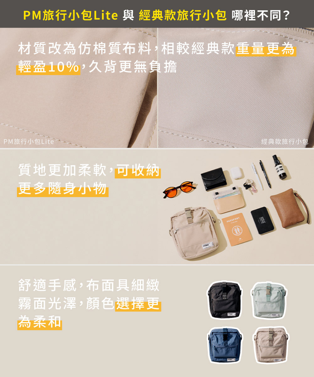 - 從 PM 熱銷旅行小包 衍伸而來,已經累積大批愛用者,成為出國旅遊、日常通勤的必備小包。